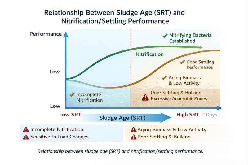 Stáří kalu (SRT) je průměrná doba, po kterou biomasa zůstává v systému. Určuje: